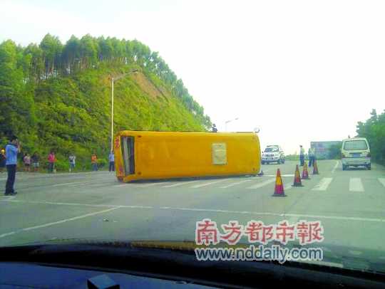 昨日下午4時30分許,鶴山市桃源鎮與鶴城鎮交界公路發生一宗交通事故,一輛幼兒園校車在路口掉頭時,被后面一輛大貨車碰撞后側翻倒地,校巴上有1名司機和14名幼童。事發后,所有幼童被送醫檢查。昨晚,鶴山警方透露,事故中僅有2名幼童輕微擦傷。