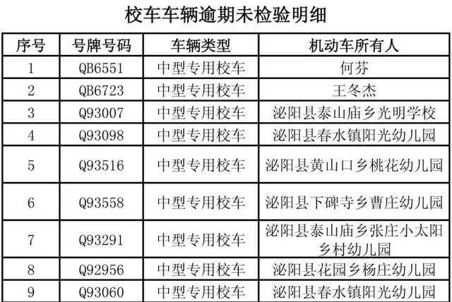 經(jīng)核查,截止11月4日,以下校車存在逾期未檢驗/違法未處理安全隱患,請校車所有人切實履行安全主體責任,及時對車輛進行安全技術檢驗,確保車況良好;及時處理交通違法行......